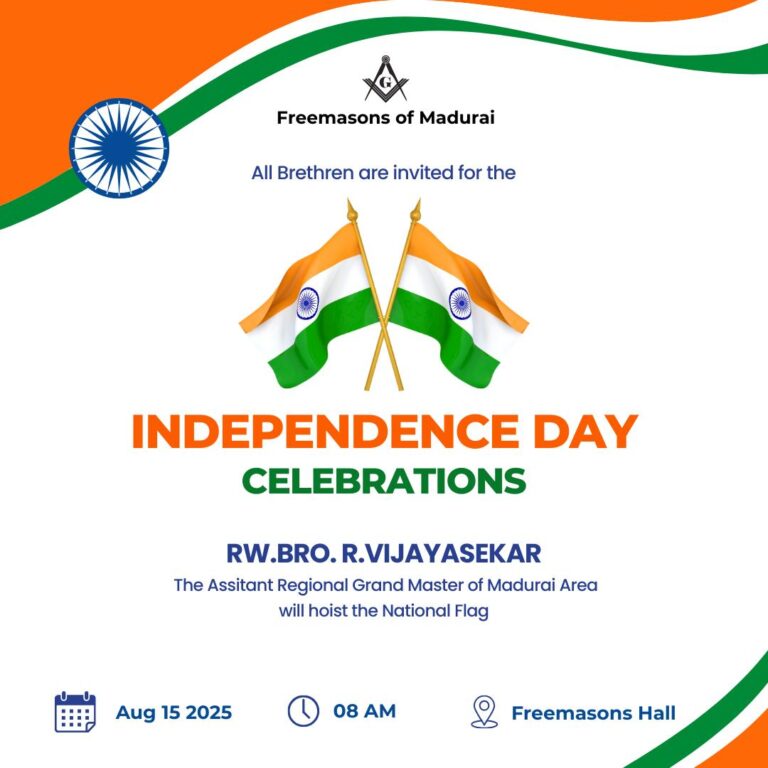 On August 15, 2025, the brethren of Freemasons in Madurai came together at Freemasons Hall to celebrate India’s Independence Day with pride and reverence.